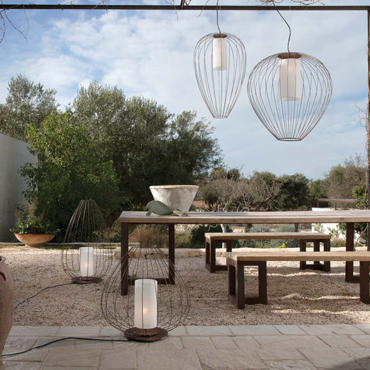 Cell Pendant Lamp, Wide, 87 cm H, Bronze Metal with White Poly, E27, IP65