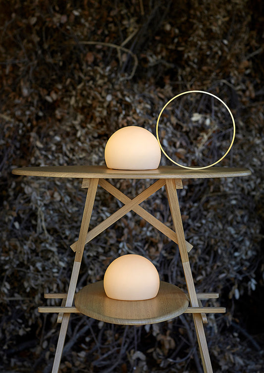 Circ Wireless Table Lamp, Poly Shade with Large Gold Ring, LED, IP67 INDOOR ONLY