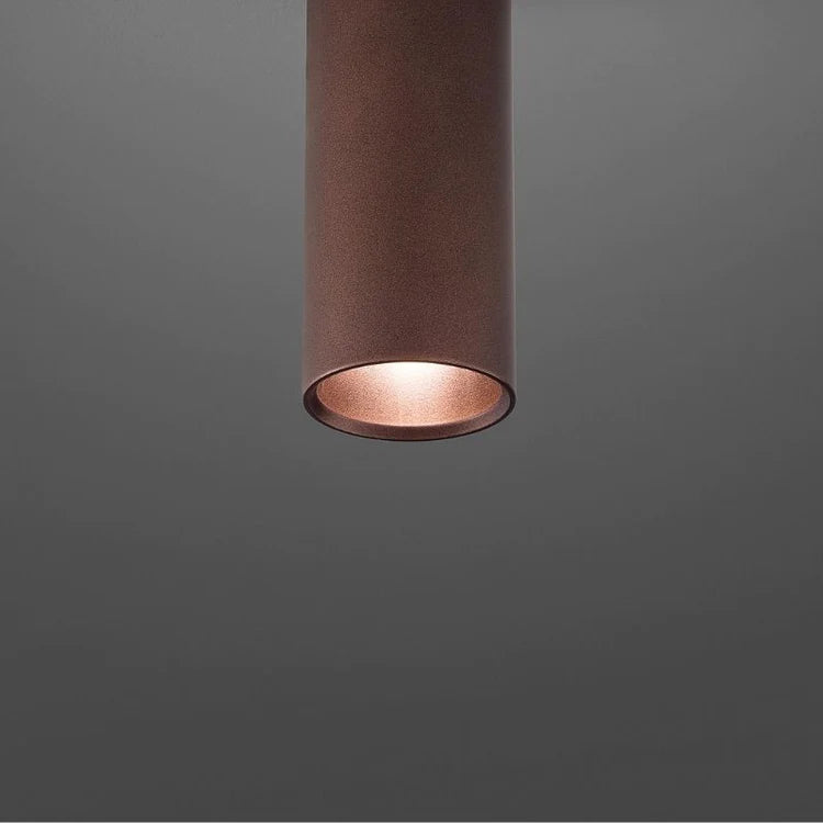 The aluminium body of A-Tube, with a diameter of 6 cm, is 4 mm thick, making it both solid and resilient. Inside, its structure is designed to house a GU10 lamp that diffuses direct light. The ceiling version, available in four sizes (14, 30, 60, 100 cm), can easily be fixed with a simple metal attachment. The suspension version comes in three different lengths, 30, 60 and 100 cm, which can be used as single pendants or combined on canopies to create multiple compositions.