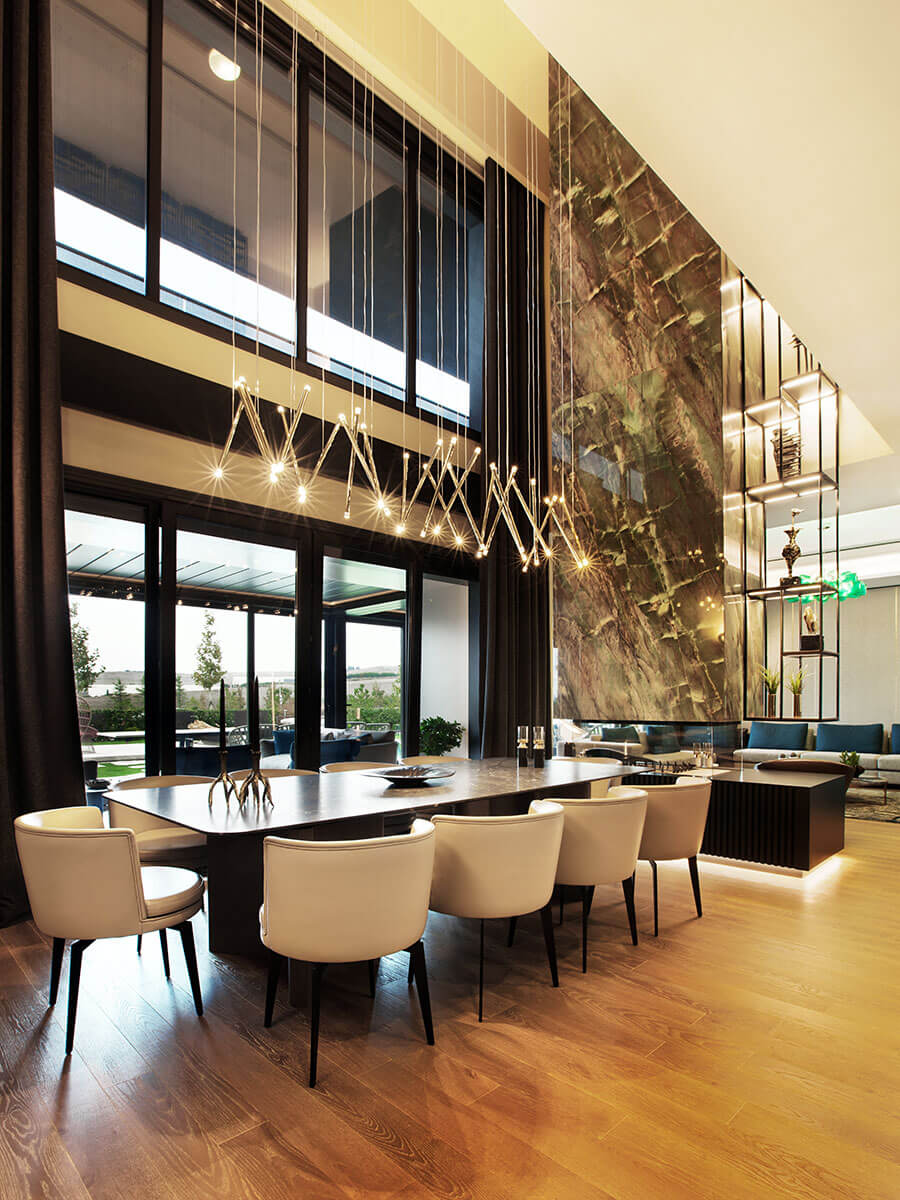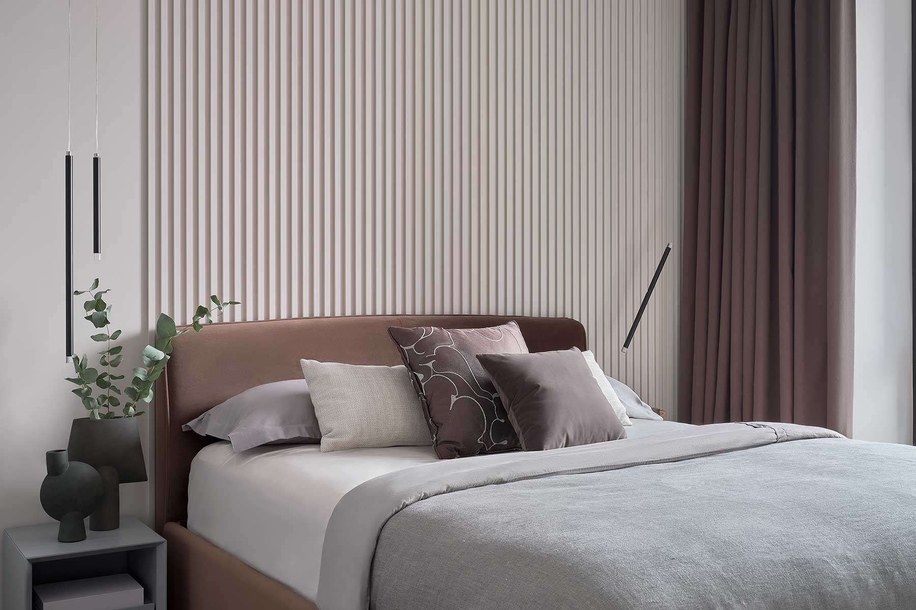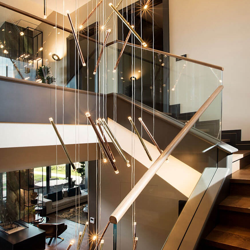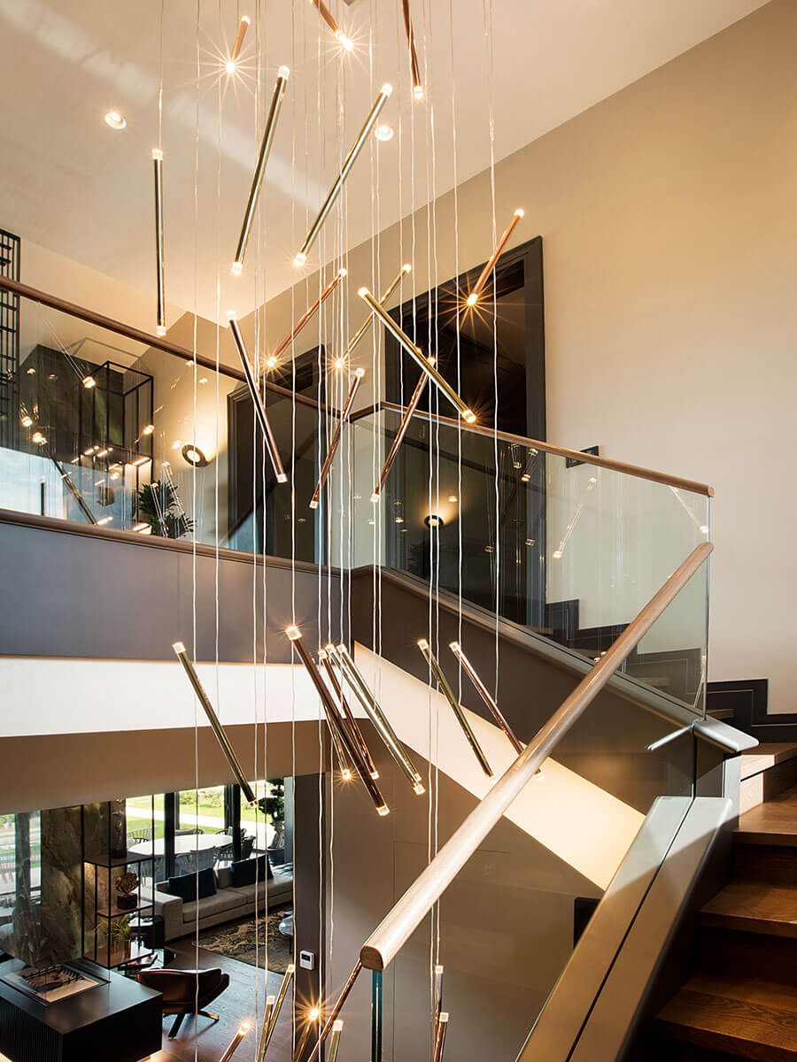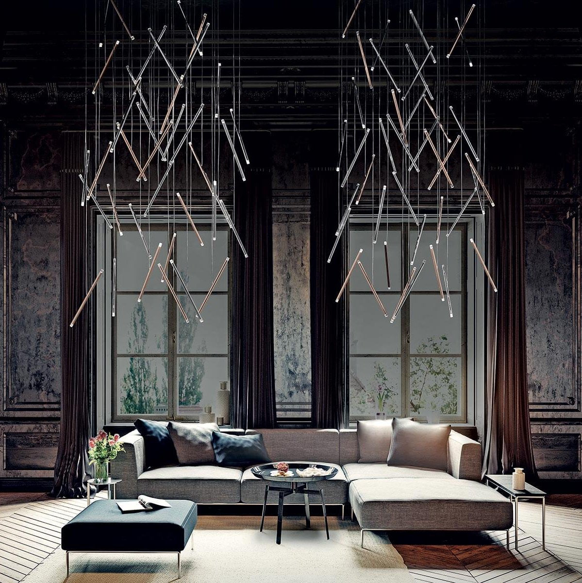Suspended as if balanced on the power cord, A-Tube Nano Duo appears to float in the space, mindless of the force of gravity. Its essential form, 50 cm long, lends itself to enchanting compositions thanks to its six finishes, either polished (chrome, rose gold and gold) or matte (black and champagne).