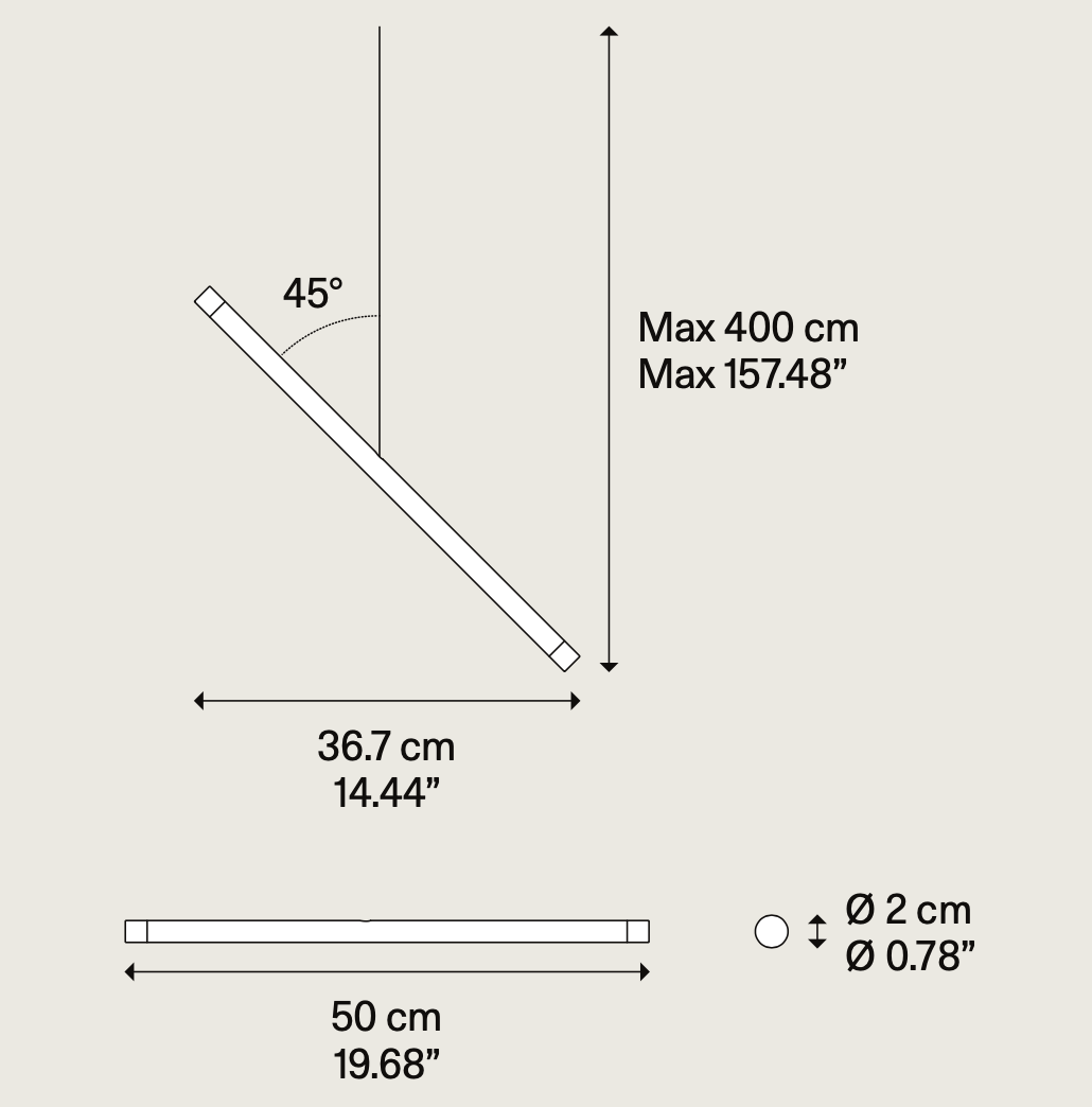 - 50 cm L (total length) | 36.7 cm L (angled) x 2 cm ø