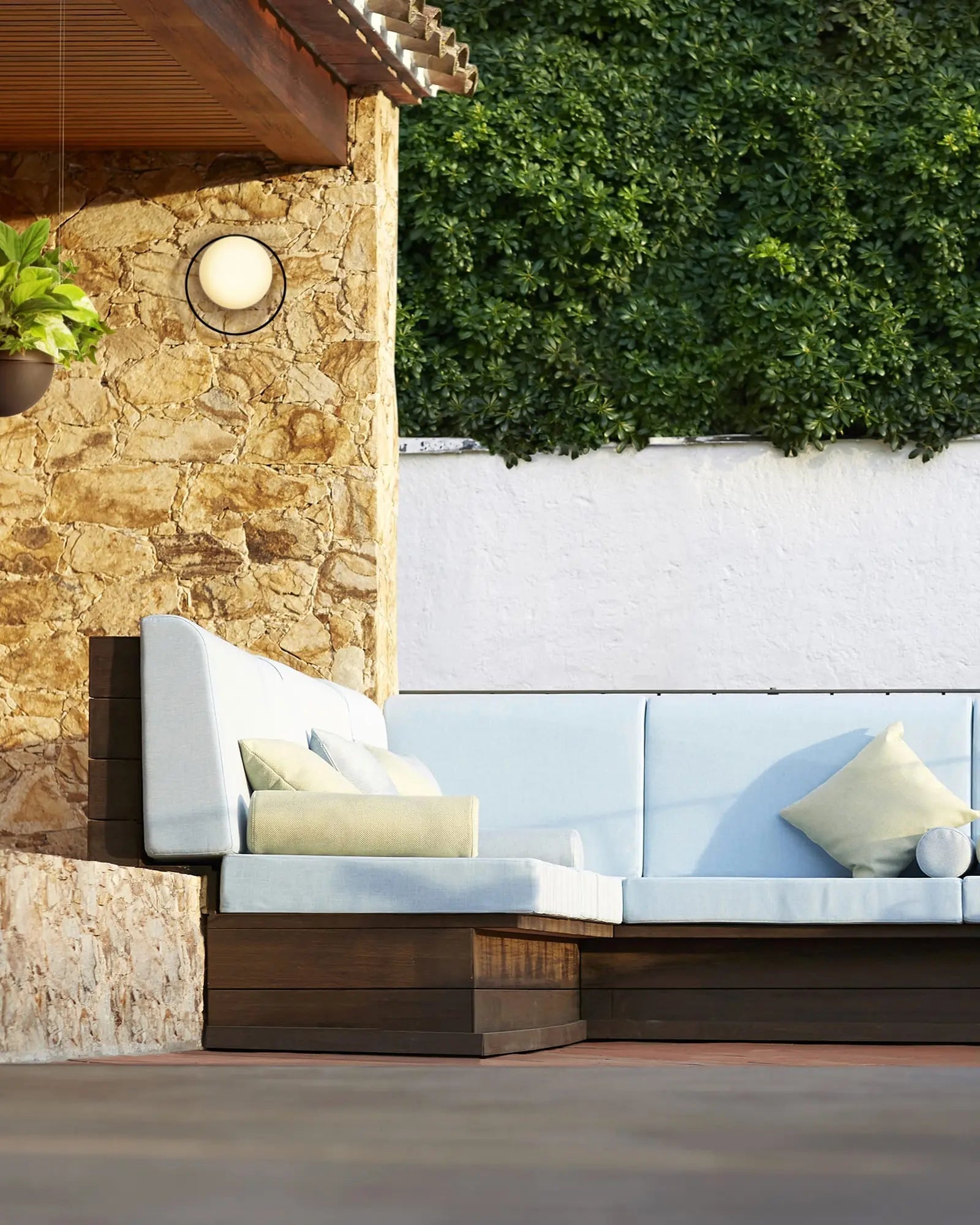 Modern indoor or outdoor wall light with an orb and an attractive metal ring. Works well in many locations - from indoor locations like: bathrooms, entrances, hallways, staircases, living rooms, dining rooms, kitchens, bedrooms and home cinemas as well as outdoor locations like: front doors, gates, walls and patios.