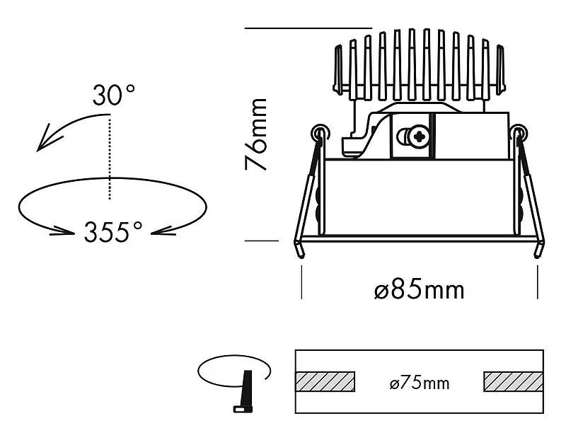 - Cut Out: 75 mm ø