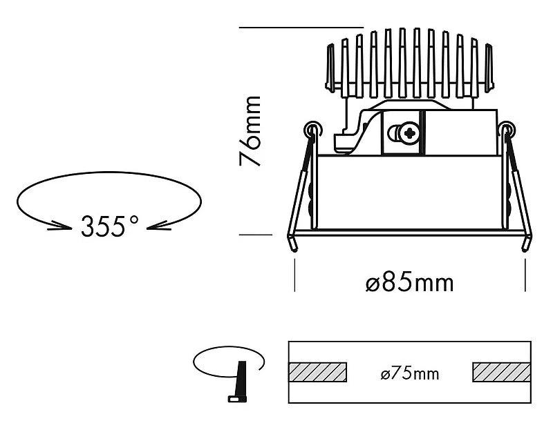 - Cut Out: 75 mm ø