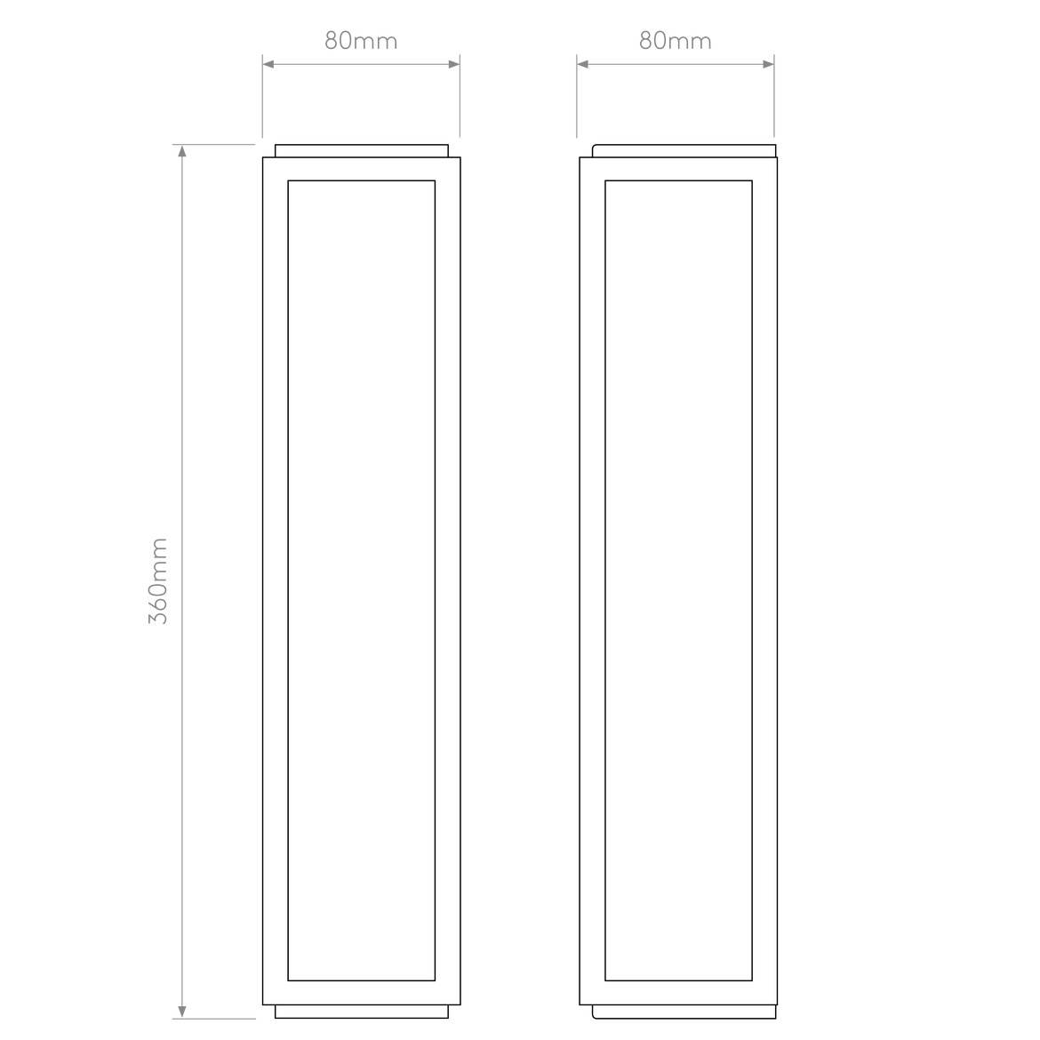 - Body: 360 mm H x 80 mm W x 80 mm P