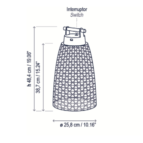 Cone-shaped battery-operated portable table lamp that creates instant atmosphere which you can use indoors or outside (or create a beautiful mood in your bathroom). The rattan shade makes it cozy and welcoming, and glows beautifully when lit. Rechargeable. LED. 2700K. IP54. Wireless. Touch Dim.