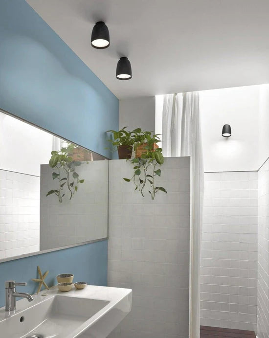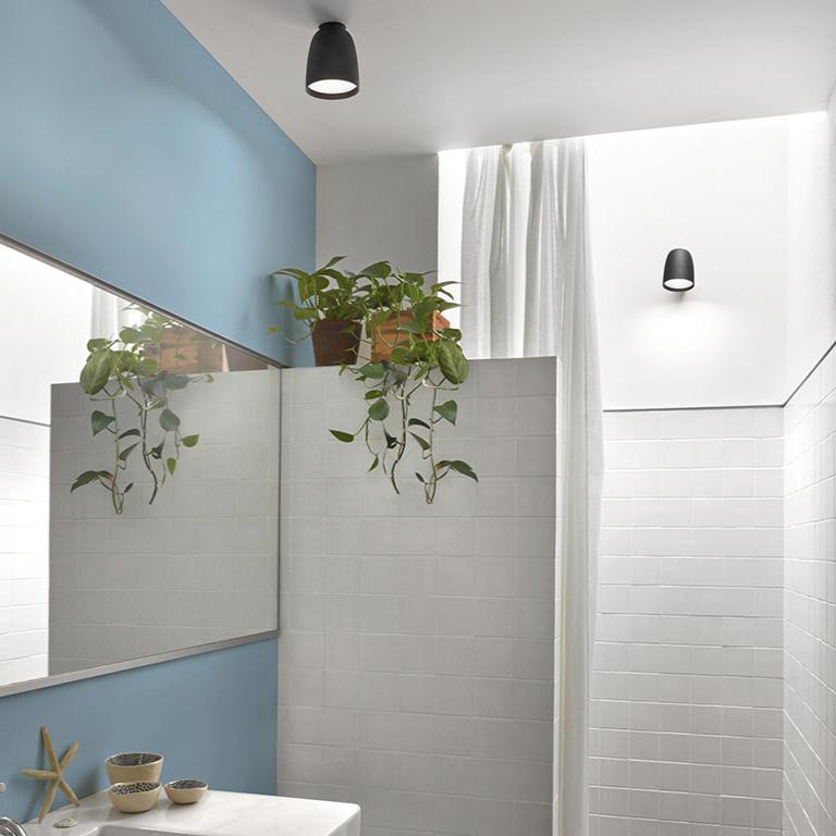 NUT is a collection of discreet lights that are characterised by their ergonomic and striking body. They are highly versatile products that can work as a headboard, a signalling wall fixture in corridors or a bathroom wall light, thanks to their water tightness. They are easy and intuitive to use. The light beam can be directed from right to left at a 180° angle. Nut lights come in 4 versions: wall fixture, ceiling light, individual suspension and bollard. The wall fixtures and ceiling lights can be installed in both indoor and outdoor environments. Their injected aluminium structure and opal polycarbonate diffuser has a built-in button on the top with 3 dimming settings. They emit direct and bright light.