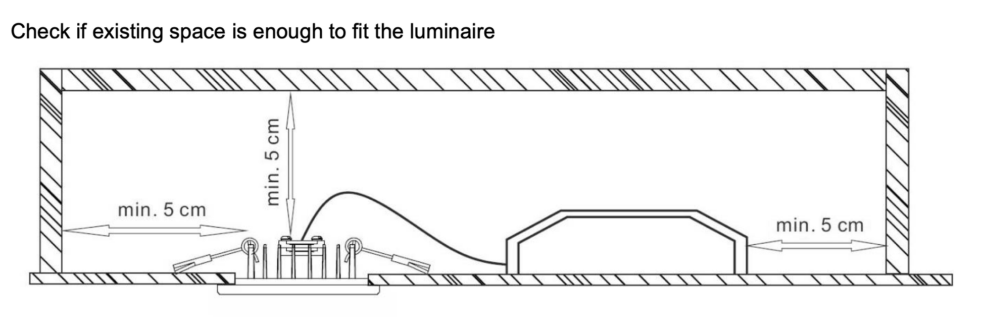- Only requires 5 cm (from top of fitting) ceiling depth