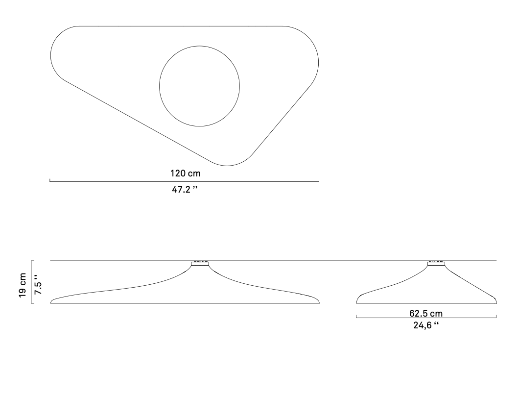 When the Sun has a date with the Moon... The Moon enters the Sun and the crown appears...” says Odile Decq. Soleil Noir is a poetic encounter between white and black, a symbolic struggle between light and darkness. A suspension or ceiling lamp with an organic form in molded expanded polyurethane, whose LED source is hidden inside a disk to generate uniform indirect diffused light.