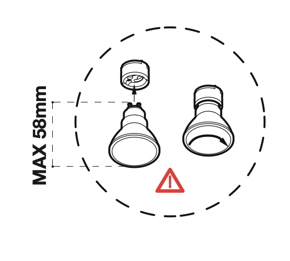- Maximum bulb length: 58 mm Long (so it doesn't stick out)
