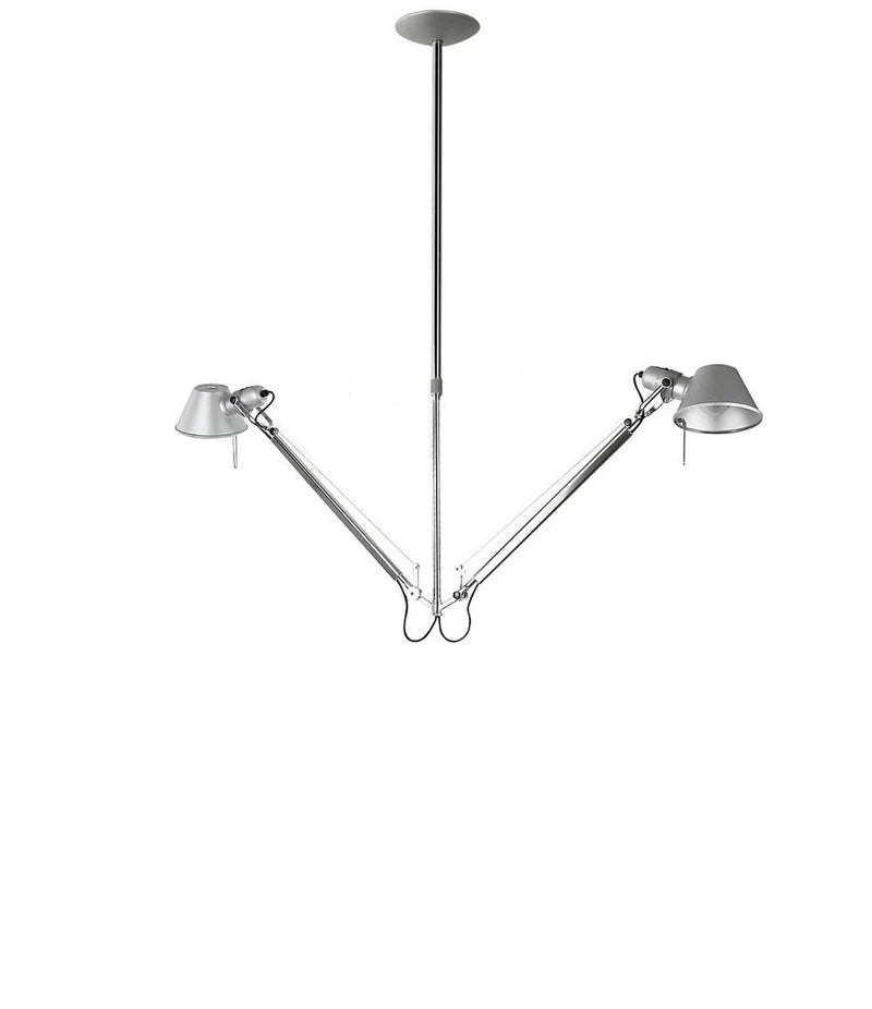 Highly adjustable double shaded pendant. Great pendant for kitchen islands, dining tables, desks, work tables, games tables - any long table where you want to spread the light across the span of the surface from a single electrical point. It's a fantastic design that provides great light, style and flexibility. Well-engineered rod allows you to move the shades where you need them - wide apart or closer together. You can even turn the shades up towards the ceiling. E27 lamping, not included.