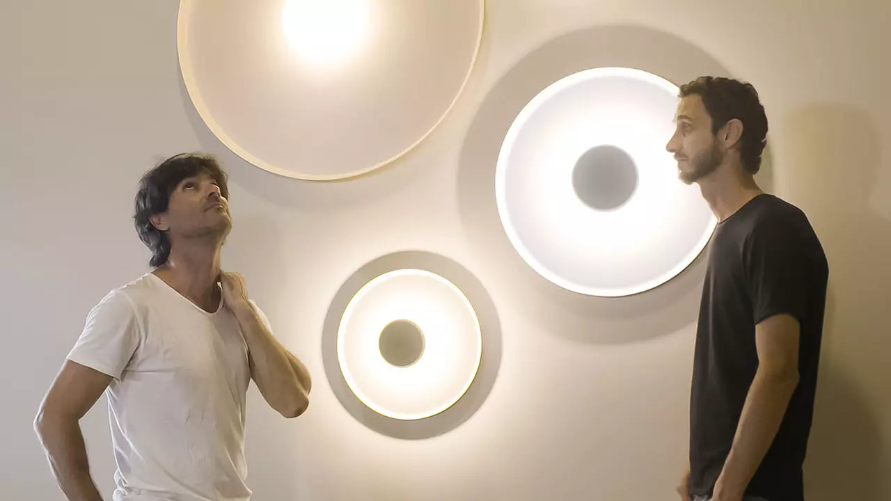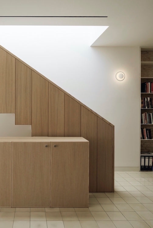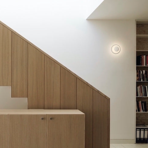 The Top is a re-imagining of the timeless ceiling rose. A pair of simple circles create a focal point with LED lighting source. Generating a uniform halo type effect with even indirect lighting and relaxing illumination. The ceiling light is made from aluminium and available in medium and large scale sizes, the latter is equipped with a glass diffuser that gives off a general direct style lighting.