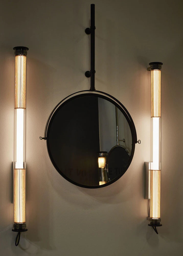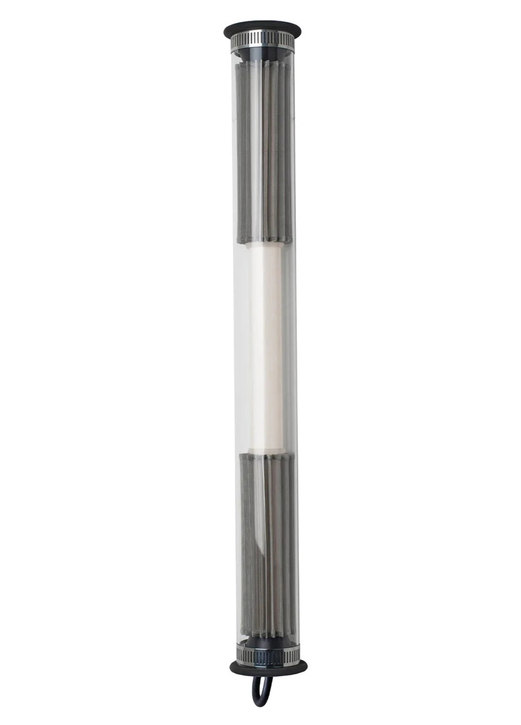A beautiful cross over between classic and modern linear IP65 wall light with all around LED lighting - it even illuminates the wall behind it. The light seems to float off the wall, secured in place by very slim yet stable stainless steel collar-brackets. The clear borosilicate tube protects the linear LED light source within. Black silicone caps at the top and the bottom keep it water tight (and cool looking). When switched off, it looks like a piece of architecture. When switched on, it glows with warm, ambient light.