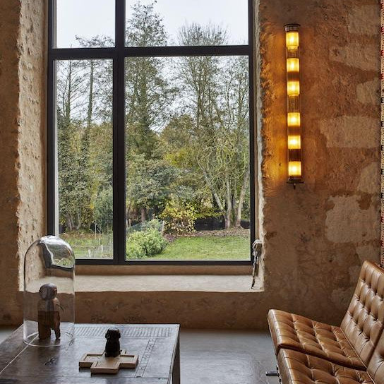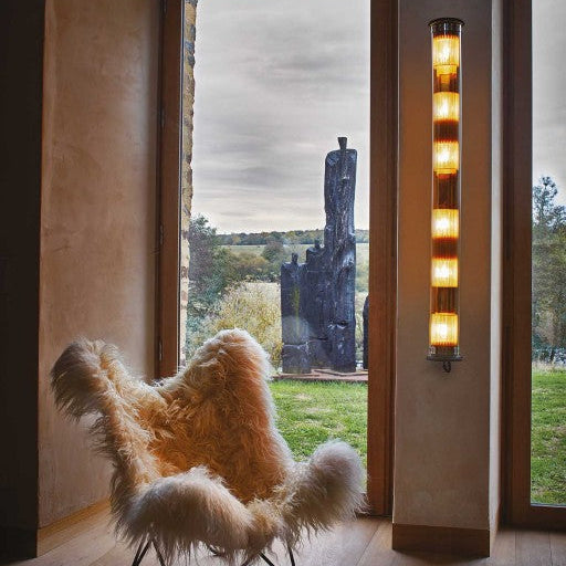 Achingly chic tubular lights with enormous amounts of style, versatility and toughness. The slim glass tube contains an inner reflector that mirrors the bulb beautifully, and you can choose where to position the reflector - to the front, back or side of the tube, altering the lighting effect accordingly. The steel brackets and collars are statements of durability and design. The little brackets make the light seem to float off the surface, light as air. Mount horizontally or vertically. There's even a version where the brackets are designed to wedge the light into corners, brilliant for certain occasions.