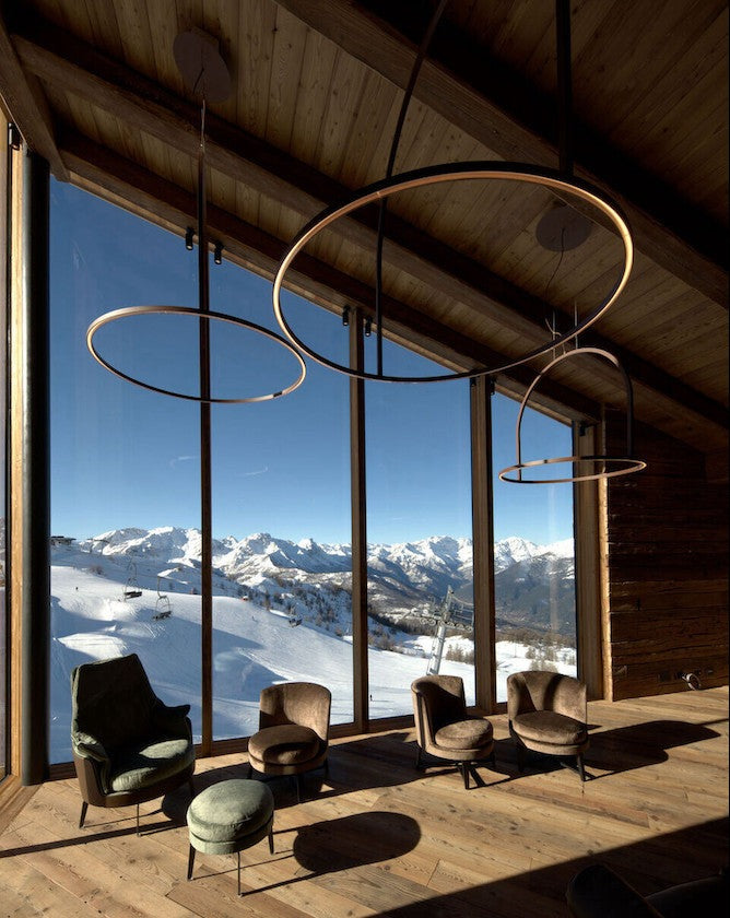 Essential graphic design and intense light. U-light expresses power and luminous efficiency emphasising the aesthetic essence in a harmonious union that creates a strong presence in the space.