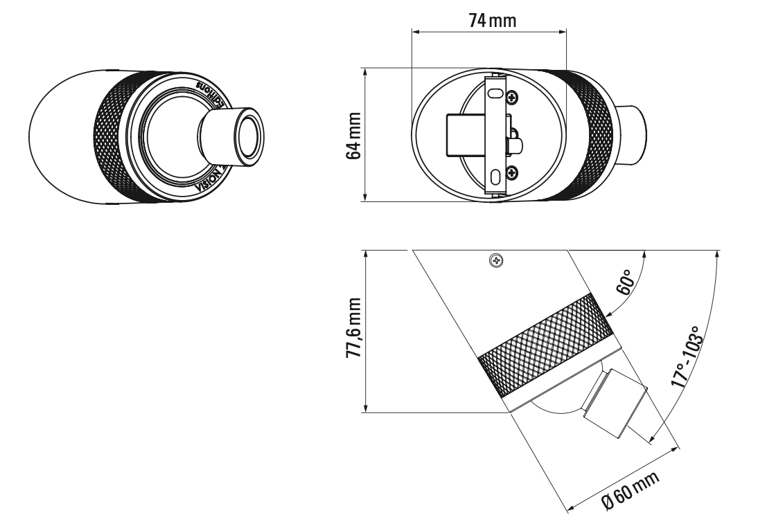 - 60 mm ø x 77.6 L (body only, excluding lens)