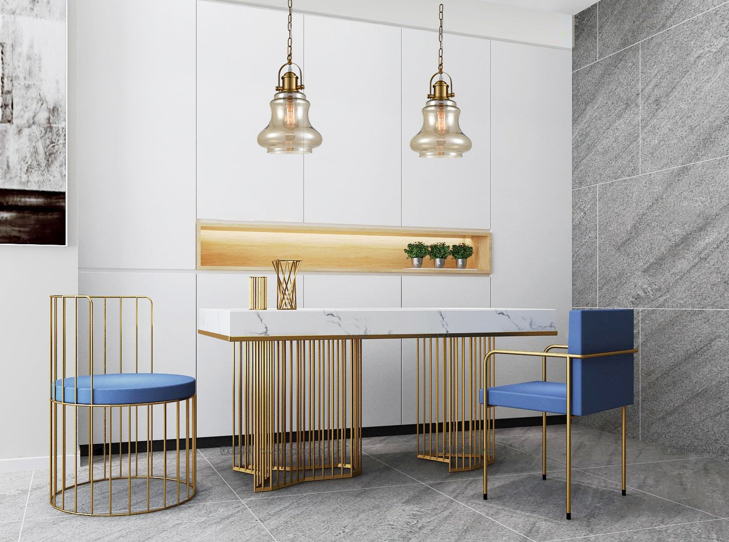 The translucent mirror effect glass shades are beautiful, and a decent size as well. Perfect for classic, modern and traditional kitchens. Choose between the warmer vibe by going with the amber glass & antique gold hardware or opt for the cool, slightly more modern smoked (like mirrored grey) glass with satin nickel hardware, same price. The mirrored glass shades are available in three styles – a pretty bell shape, a hipped bell shape and a more vertical, curved bell shape, prices vary.